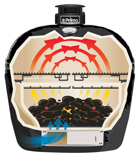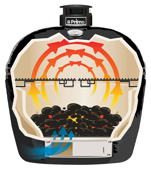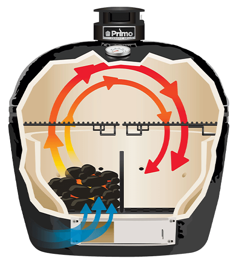 Primo's Large and Round charcoal grills are the perfect size for feeding families of 5-10 people. Utilize the multiple cooking configurations our Primo grills offer to grill the meat of your choice via direct heat on one side, while indirectly roasting tender food such as seafood or vegetables on the other.